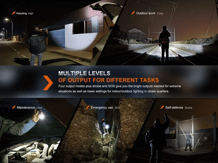 - 3 Helligkeitsstufen und 2 taktische SOS- und Blitzlichtmodi