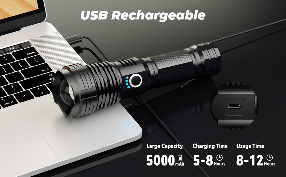 - Im Lieferumfang ist ein 5000 mAh 26650 enthalten Wiederaufladbar Lithium-Ionen-Akku.