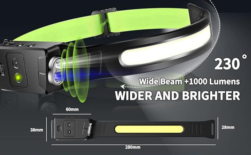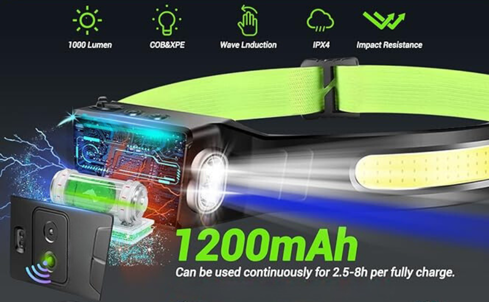 Sensor-Stirnlampe 2.0: Eine Revolution in der tragbaren Beleuchtung. Diese fortschrittliche Stirnlampe bietet Ihnen mit ihrer Bewegungssensortechnologie und leistungsstarken 1200 Lumen Leistung unübertroffenen Komfort und Effizienz. Sie wurde für eine breite Palette von Aktivitäten entwickelt, von Camping und Outdoor-Abenteuern bis hin zu Arbeitsaufgaben und Notfallsituationen, und ihr 230° breiter Strahl sorgt für umfassende Sicht.