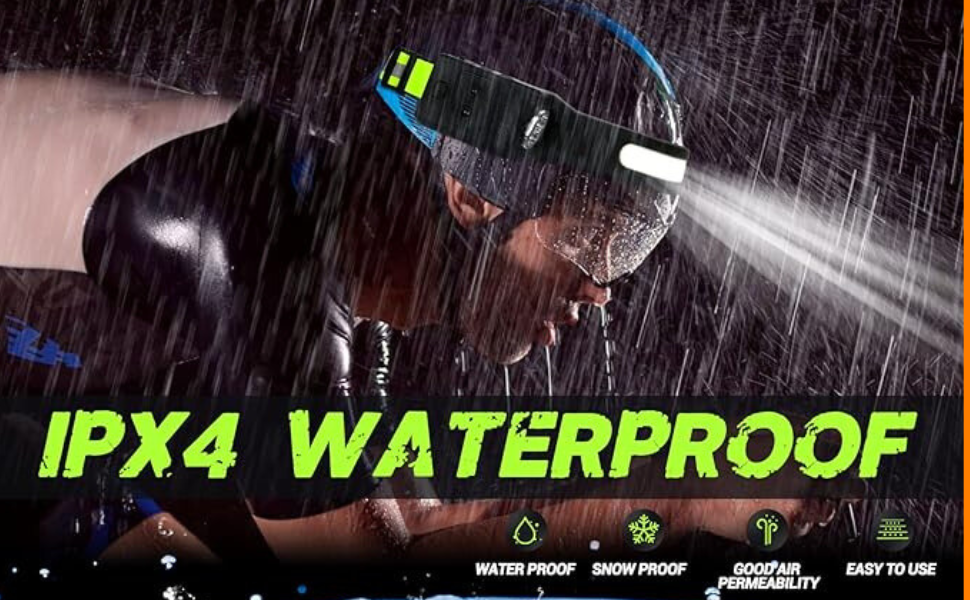 Schutzklasse IPX4für raue Bedingungen, für drinnen und draußen.70g Stirnband, MerkmaleReflektorstreifenfür mehr Sicherheit bei Nacht. Es isteinstellbar für Erwachsene und Kinder.